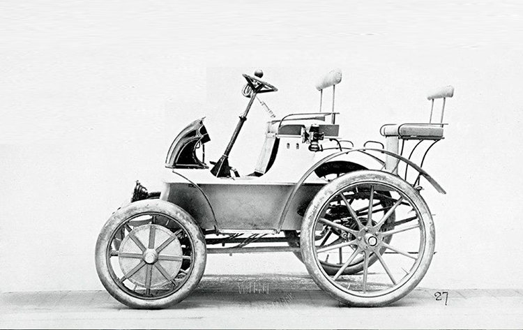 ▲ 搭载前轮轮毂电机和铅酸电池供电的 Lohner Porsche 原型车