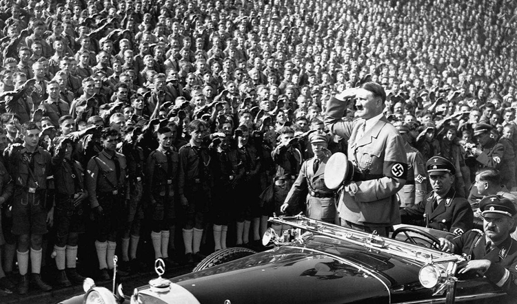 ▲ 1938 年 4 月 20 日希特勒的生日当天,波尔舍先生演示“国民车”的模型