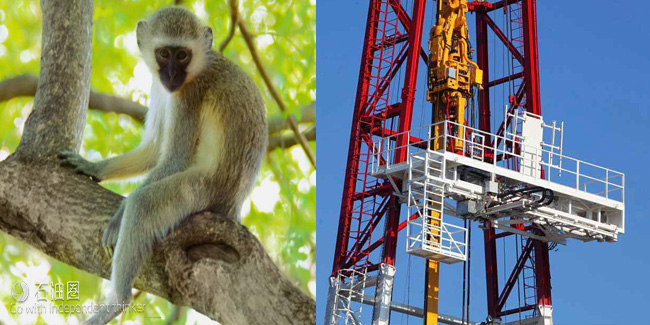 关于二层台为什么又叫猴台,有人认为“那里空间狭小,还要扣立柱,需要人员像猴子一样灵敏所以叫做猴台”,有人说因为“工人需要像一只猴子一样爬上去”,还有钻井工人说“如果你站在钻台上面,看下面拴着绳子,在90英尺高平台上忙着接单根的人们,你就会发现那根系着的绳子就像是一个猴子的猴尾巴。”